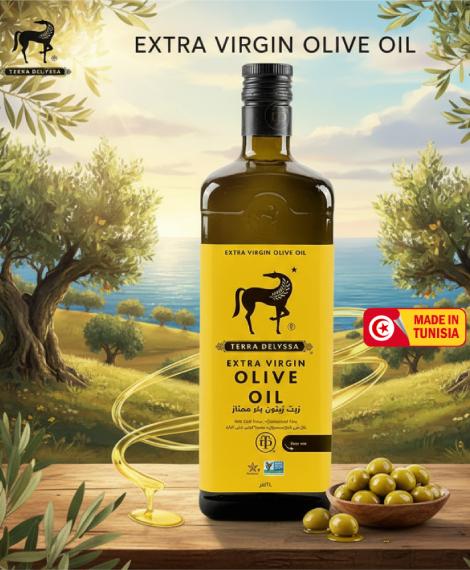Terra Delyssa Extra Virgin Olive Oil is a premium quality olive oil imported from Tunisia. Made from hand-picked olives using the First Cold Press method, it ensures a pure and natural taste. 100% cholesterol free, healthy, and ideal for salads, pasta, grilling, and everyday cooking.